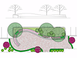 Milpitas, California | | | | The site was originally a sand volleyball court adjoining a parking lot. A curved seatwall blocks parking lot view and noise and provides seating. Fragrant shrubs help provide a pleasant atmosphere. Circular unit pavers provide visual interest. Architect: Wayne Renshaw. Contractor: Devcon Construction.