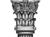 | | | | I start this project by looking for surface maps--pictures that I will paste onto a simple model. For this project I found a simple line drawing of a typical Corinthian column capital. A photograph of a capital could have been used here, although it often difficult to find an photo taken from a similar perspective. Working from an illustration insures the proper perspective. |